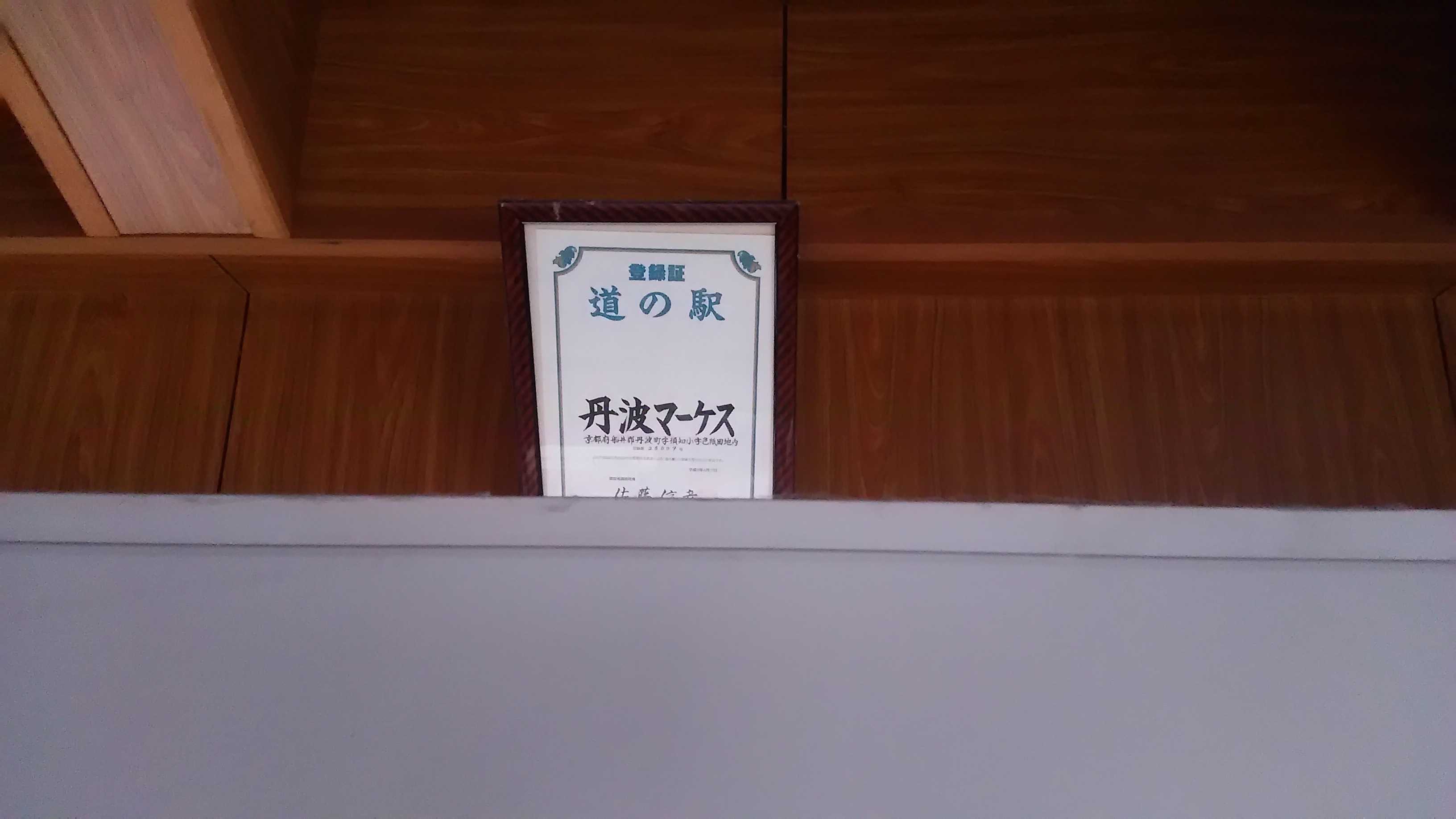 (2016-06-08) さらびき から10分程ですぐ着きます。しかも、途中に 京丹波味夢の里があります。後でビュッフェを食べに行こうと思います。 マーケスの登録証 以前は奥まった事務所内にあったんですが、道路側の野菜市場内にありました。この時間は当然終了してますが、入口に鍵は掛かってなかったので、チラーっと入って撮れました。 |