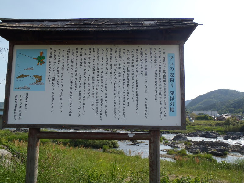 (2012-05-13) 駅の裏の揖保川に行くと鮎の友釣り発祥の地という看板がありました。 |
