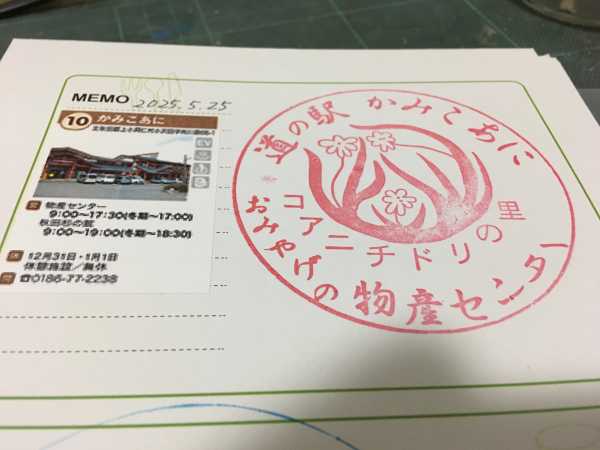 (2024-07-17) スタンプデザインは、道の駅かみこあにの施設である秋田杉の館が描かれております。 |