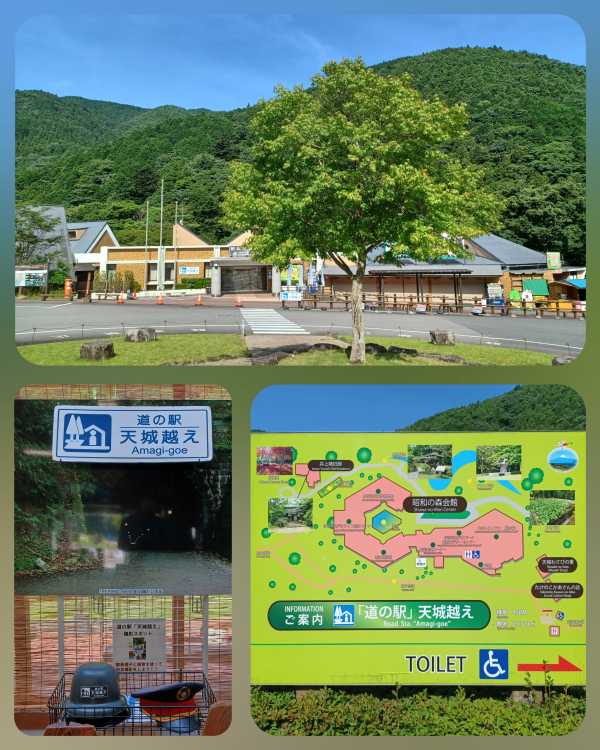 (2024-07-07) 【270-01】記念きっぷゲット。(番号17470)この日は伊豆半島の道の駅巡り。1駅目は8時30分開店の伊豆市の駅。伊豆半島のほぼ中央部に位置し、山々に囲まれたロケーション。緑や木々も多く、駐車場は自然と日陰になって涼しかった。周辺観光スポットとして、旧天城トンネルや河津七滝とループ橋があり、道の駅内にも旧天城トンネルを模した撮影スポットがある。8時30分開店だが、開いてるのは観光案内コーナーだけで、一応きっぷやスタンプ等の必要なものはここで揃う。販売物は雑貨品が中心で道の駅ロゴ入りグッズもあるが、食品類はほぼ無し。その他の施設として、昭和の森会館(有料)には博物館や庭園があり、レストランではわさび丼や猪メニューを提供。売店緑の森でお土産品が揃う。別棟にはわさびソフトクリームを販売するわさびの店と椎茸コロッケを販売する総菜店がある。 |