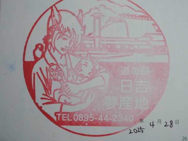 (2024-01-07) こちらも鬼北町で旧日吉村地区に位置しています。旧名称はそのまま「日吉村」でしたが、合併によって鬼北町となったため愛称の「日吉夢産地」に変えたのだそうです。しかしなぜか標識は「道の駅 鬼北町」に…おそらく旧名称が地名だったことと「日吉夢産地」の文字が愛称として駅名部分の下に既に書かれていたことが相俟ってこのような不思議な標識になったのでしょう。こういう風変わりな標識の道の駅のときはいつも雨なんですよね…(お殿水とか)こちらにも鬼である「柚鬼媛」の像がありやはりインパクトがあります。まあ鬼王丸の方が怖いかな(^_^;) |