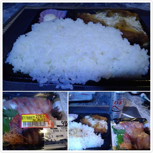 (2025-01-03) 昨夜からの車中泊でチェックアウト、『番外編』(^_^;)。8kmほど広島寄りの所にローソンポプラありました(^^)。チキン南蛮ごはん特盛(*^^*)。バランス取るため、近くのイオンで半額以下になってたお刺身を(笑) |