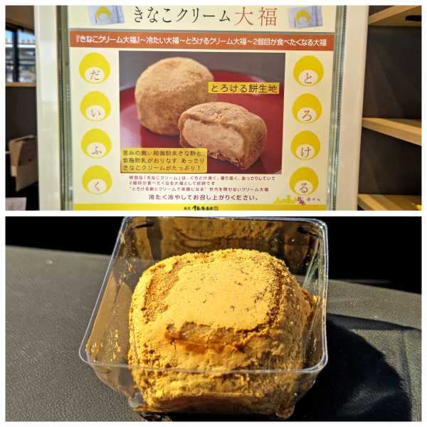 (2025-01-18) ここに来たらお勧めのスィーツです。食べる時きな粉がこぼれやすいですが、そんな事よりハマりました。250円 |