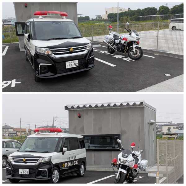 (2025-07-07) 道の駅の駐車場奥、大型車枠横に警察の詰所がある(笑)。車中泊は安全かも(^^)。 |