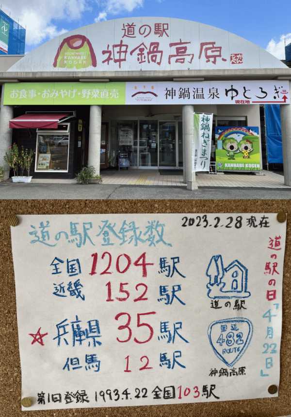 ・道の駅の建物の裏手に併設された温泉「神鍋温泉ゆとろぎ」のフロントにも同じスタンプがある。「スタンプを押したいのですが…」とフロントで申し出れば、スタンプとスタンプ台を引出しからおもむろに出してくれる。つまり、事前に温泉にスタンプがある事を知っていてこそ道の駅の営業時間外にスタンプが押せるというメリットが得られる。なお温泉の営業時間は12:00〜21:00(平日)、11:00〜21:00(土日祝)である。故に、兵庫県北部で1日のスタンプラリーを締め括るなら、この道の駅がお勧めのひとつである。(GoodSpeedさん,18/10/01)