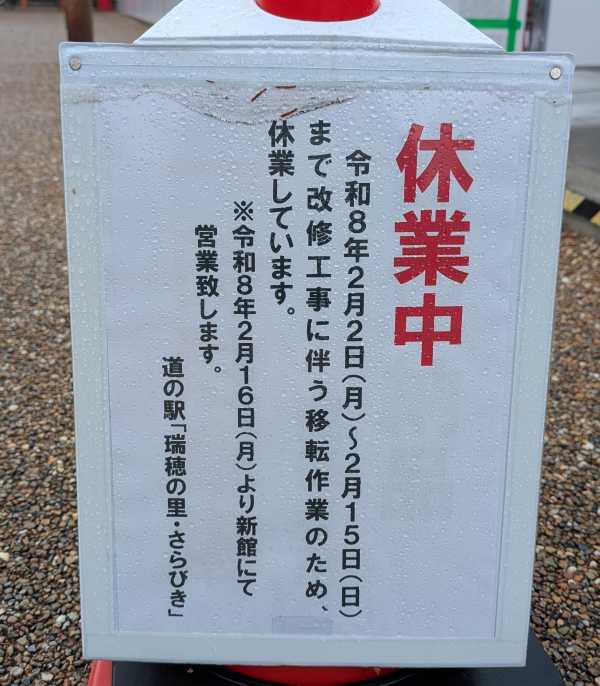 ・25/10/18 :最近、各地でリニューアルする道の駅が増えてきましたが、瑞穂の里も、2026年春にリニューアルしそうです。と言うか現在同敷地内で工事中でした。道の駅自体は、営業中でした。あっ!私はメイヤー荒らしではありません。お許しを!(babukunさん)