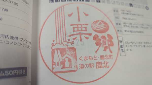 ・24/01/05 :【258-01】記念きっぷの販売は無し。1日おいてこの日は山鹿市にある当駅の開店時間9時に合わせて到着。国道3号沿いの駅で、福岡県との県境である小栗峠がすぐ近くと言う事で、山の中の駅をイメージしていたが、意外と道の駅付近まで集落が続いている感じであった。駅入口に門松が飾られており、お正月らしい音楽も流れていてお正月ムードたっぷり。規模としてはそんなに大きくは無いが、必要なものは過不足なく揃って落ち着いた印象の駅。山鹿市の特産品である栗関連のお菓子を取り揃えており、ソフトクリームも栗の他、たまご・さつま芋と一風変わったフレーバーを用意。栗あんぱんを購入したが、例えるなら栗きんとんが中に入っているようだった。熊本県らしいたかな弁当も美味しそうだったので購入。新春感謝祭も別の日に開催され、たまごの掴み取りや野菜の詰め放題、おぐりパイの販売等を行った。ここで熊本県コンプリート。(彦成さん)